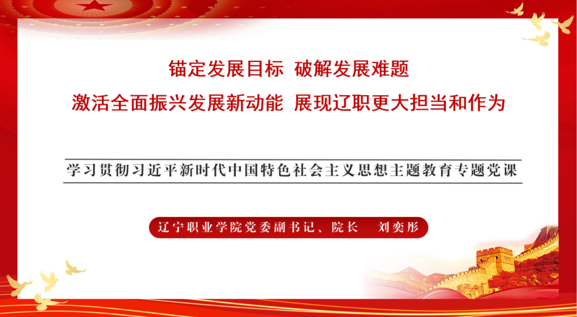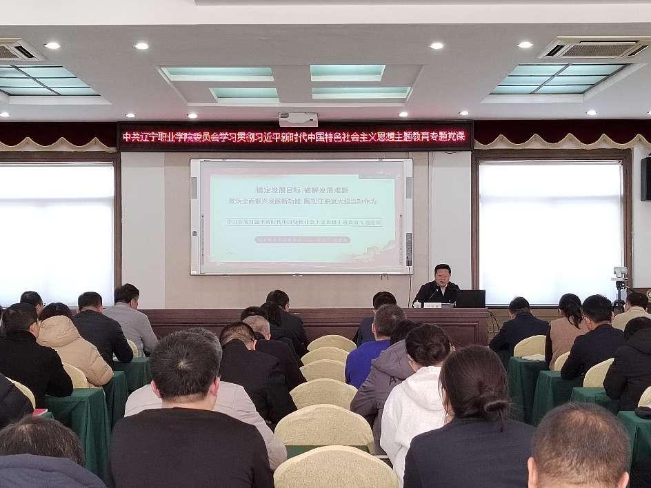 按照学院关于主题教育的工作安排,11月29日,绿色888线路检测党委副书记、院长刘奕彤以《锚定发展目标破解发展难题激活全面振兴发展新动能展现辽职更大担当和作为》为主题作专题党课。省委教育工委主题教育第三巡回督导组成员列席党课,全体中层党员干部、其联系基层党组织、所在党支部和分管领域全体党员参加会议。