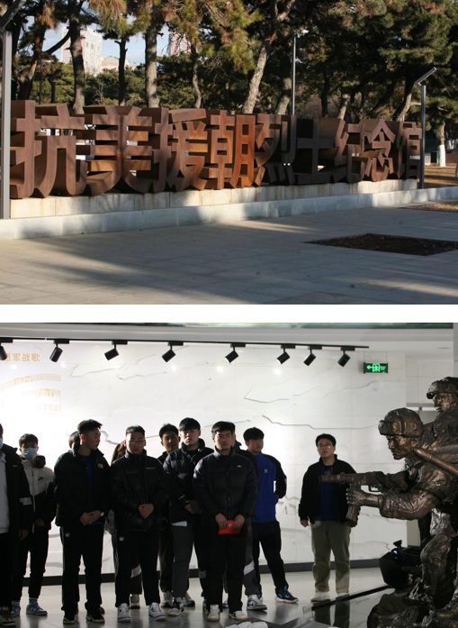 下午15:00,师生们来到抗美援朝烈士纪念馆,身临其境感受志愿军将士保家卫国的峥嵘岁月和光辉业绩。透过馆内存放的志愿军战士遗物和详尽的资料介绍,全体师生仿佛置身于抗美援朝的烽烟之中,中国人民志愿军在敌我力量悬殊的背景下,凭借心中的坚定信仰、爱国情怀、斗争精神和英雄气概,打破了美帝国主义不可战胜的神话,打出了新中国的国威和军威,打出了中国未来的和平发展道路。黄继光、杨根思等特级战斗英雄的光辉事迹历历在目,让大家在沉思之余切实领悟到了志愿军身上迸发出的伟大抗美援朝精神,而这也将不断激励着一代又一代的中国人民不屈不挠、前赴后继,为中华民族的伟大事业挥洒血汗。