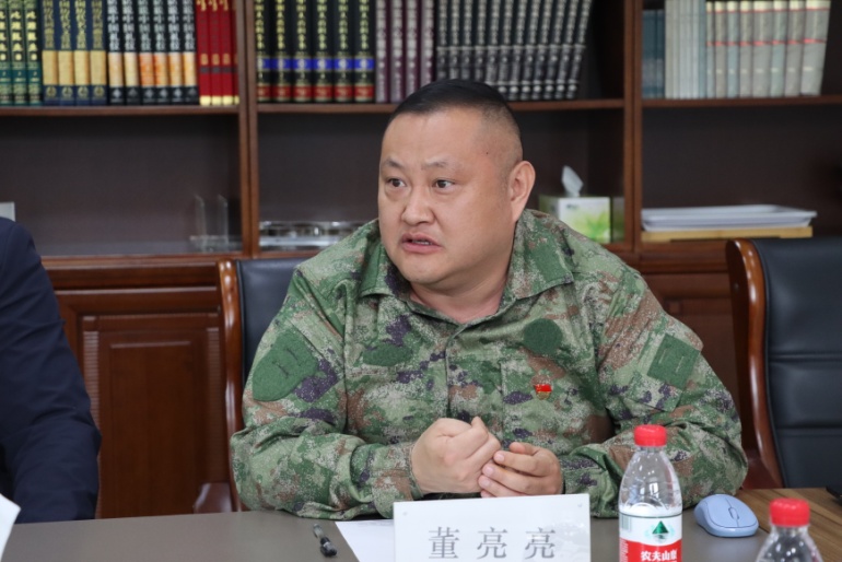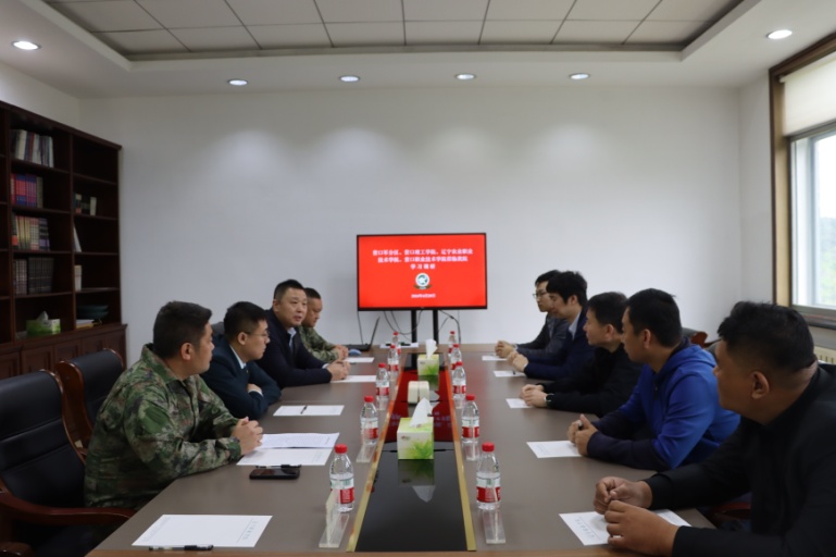 赵学玮处长代表学院欢迎孙海涛处长一行来校调研武装工作,并就学院武装工作规范化建设、发展历程和工作开展情况进行充分交流。王冬副处长结合多年来学院武装工作做法和特色以及未来征兵工作站、“雷锋兵”预征班建设情况进行汇报交流,进一步加大征兵宣传发动,创新院校征兵机制,有效吸引广大适龄学生报名参军。武装部专武干事、军事理论与安全教育教研室主任董亮亮结合多年征兵工作“实战”经验,与兄弟院校负责同志互相交换意见,深化思想认识,切实增强做好大学生征兵工作的责任感、使命感,确保上级下达征兵任务圆满完成。